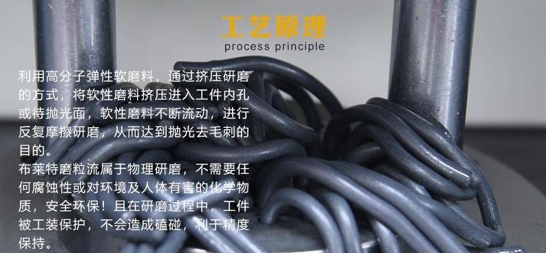 利用高分子彈性軟磨料,通過擠壓研磨的方式,將軟性磨料擠壓進入工件內孔或待拋光面,軟性磨料不斷流動,進行